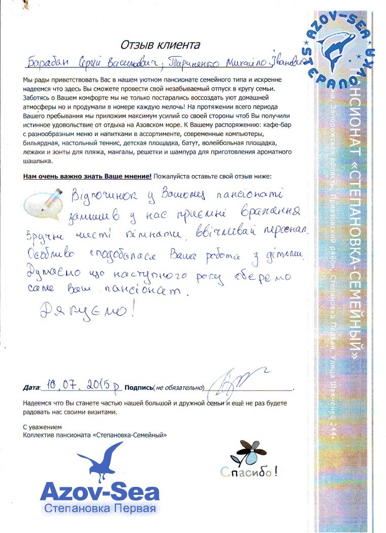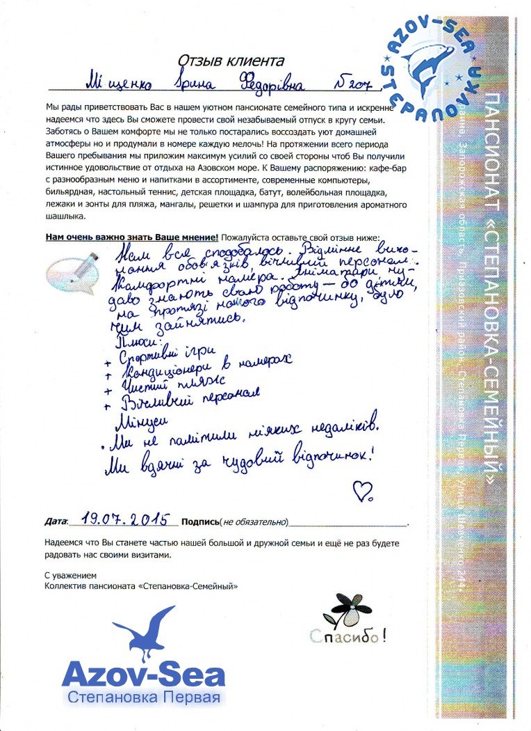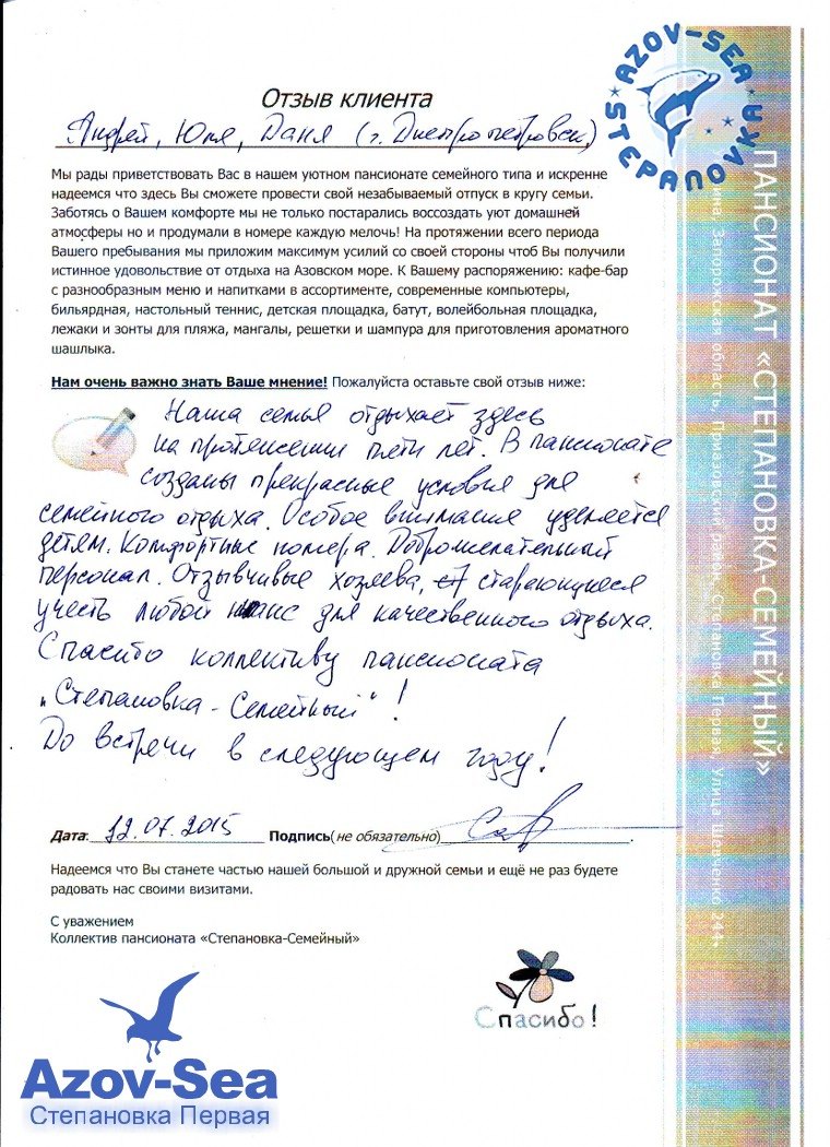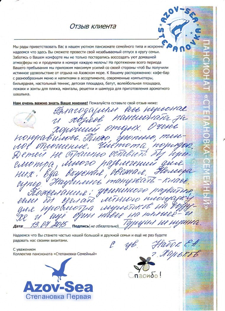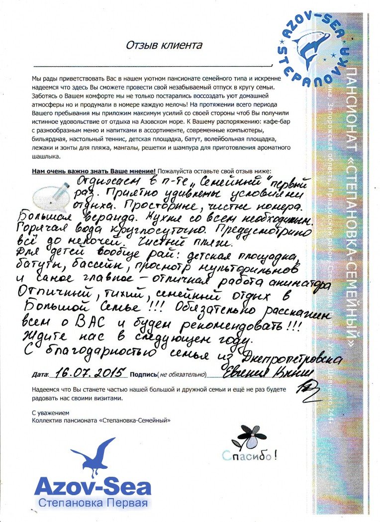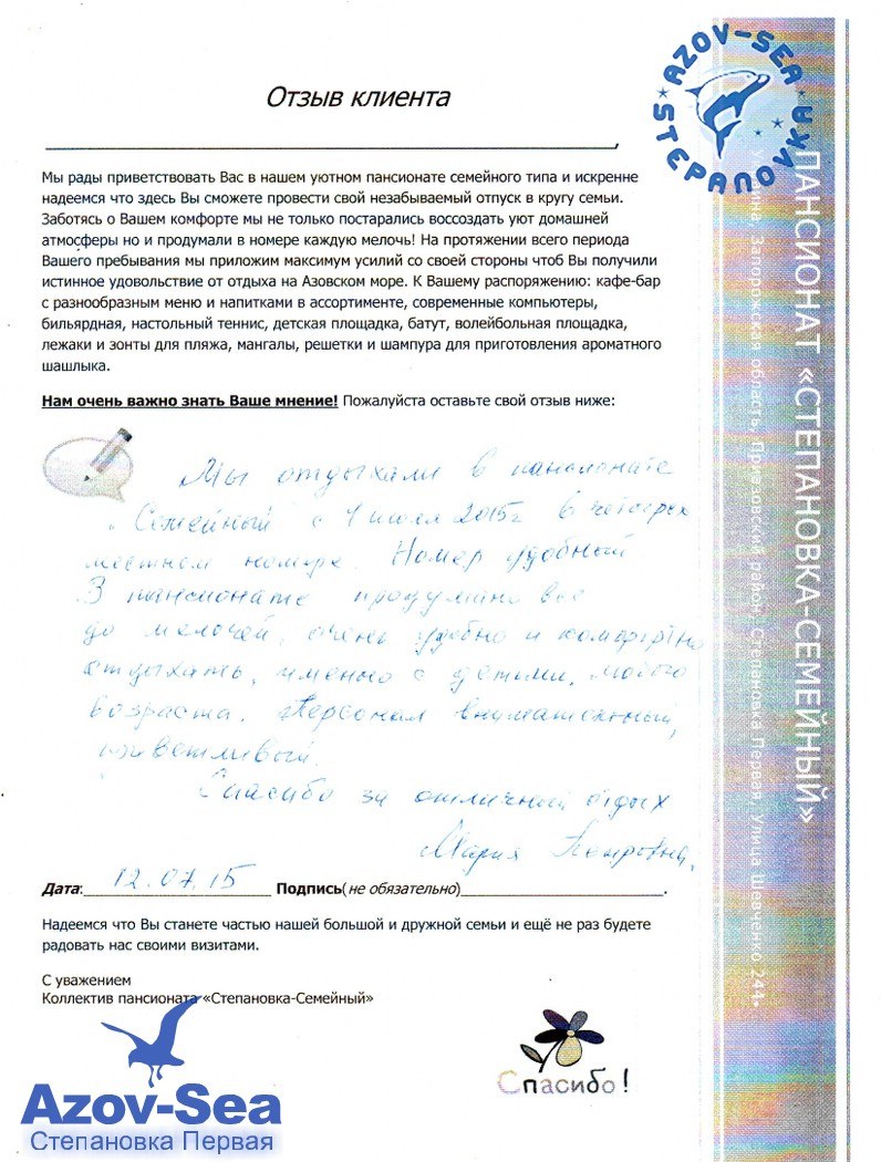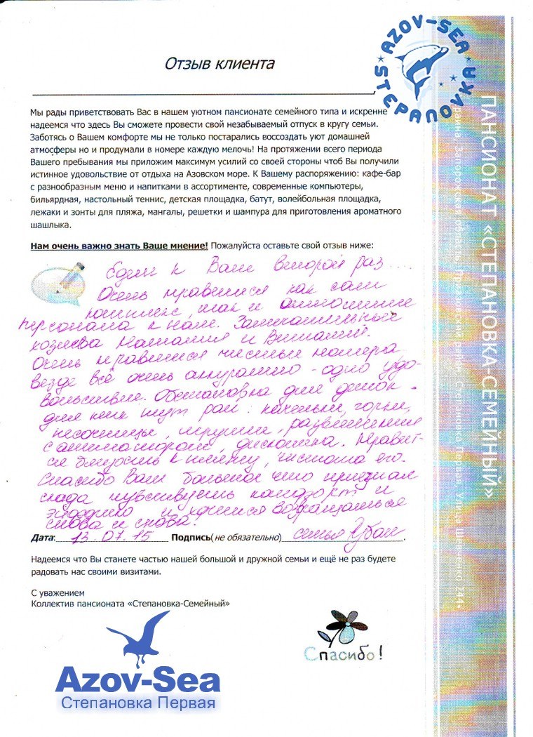 Бланки Отзывов