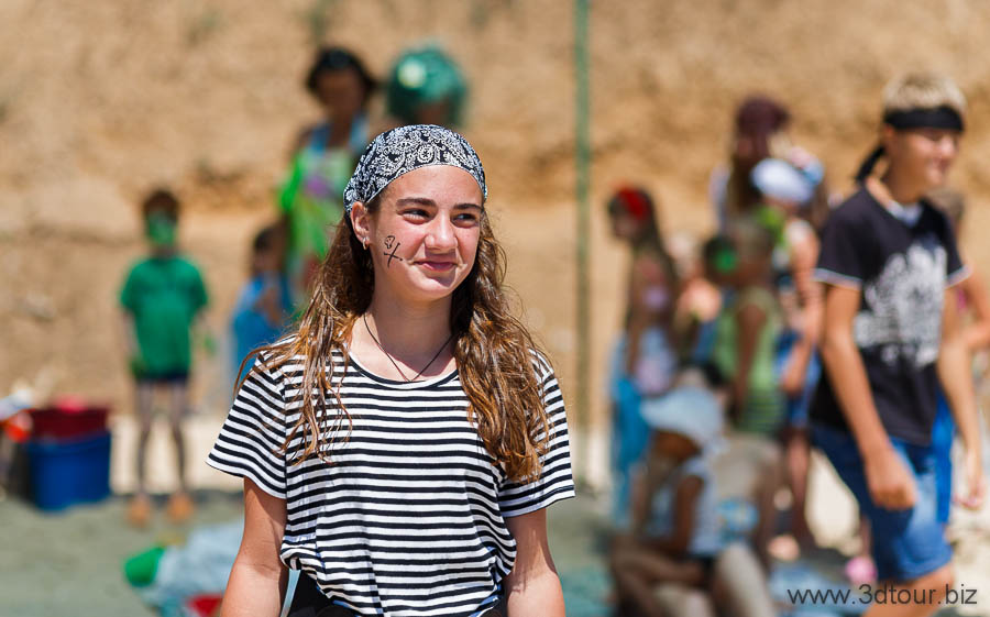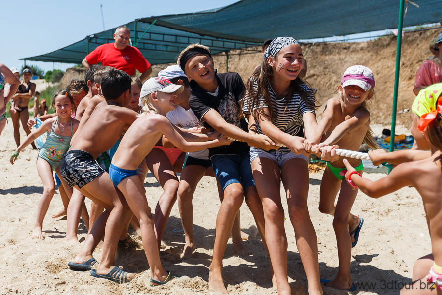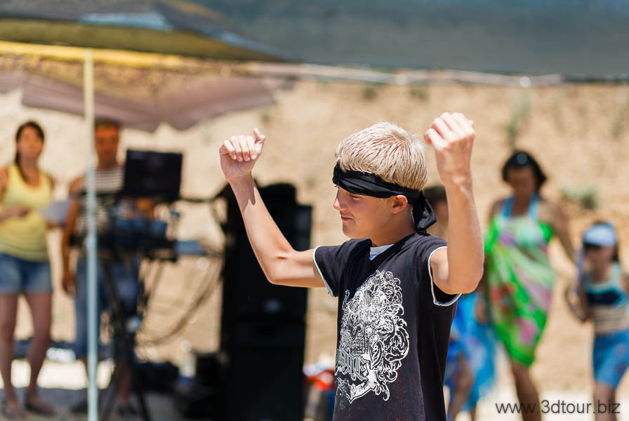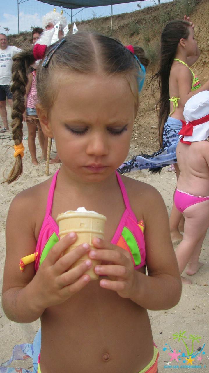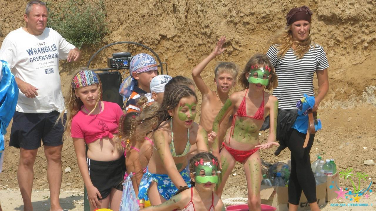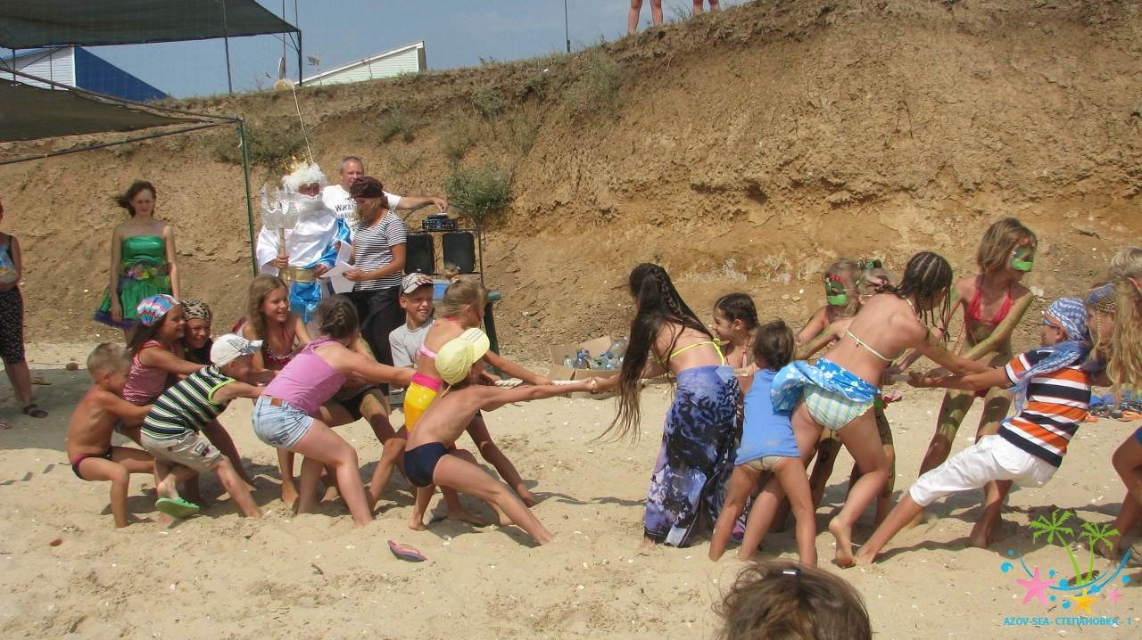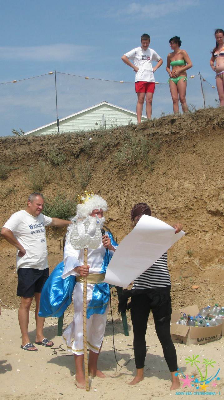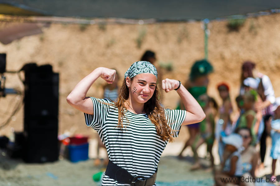 Сказочные персонажи развлекают детей на пляже. Очень весёлый праздник.